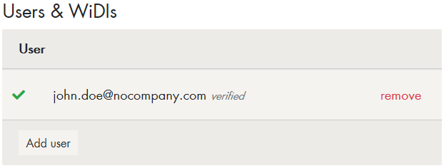 In order to assign a WiDI to a license pool, it must not already be assigned to another license pool. In addition, the WiDI must be valid (not registered as stolen or lost) in order to add it to the license pool. The process of adding and removing a WiDI is similar to the process for the user. Again, record has to verify the new WiDI before it can be used for i-record.