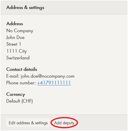 The pool manager can add a pool manager deputy for the license pool. This deputy has the same rights as the pool manager and can therefore manage the license pool in his or her absence. To do this, click on "Add deputy" below the address details. The e-mail address of the deputy, who is also registered on the record website, can then be entered in the window that opens. The deputy can then access the license pool via his or her own web account.